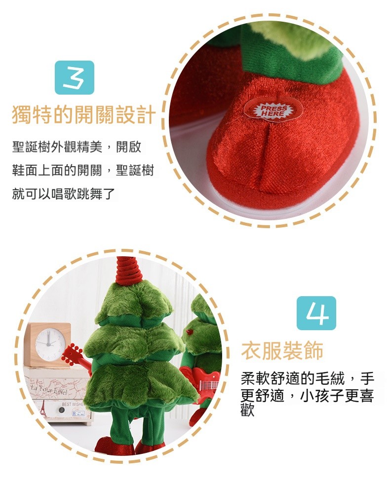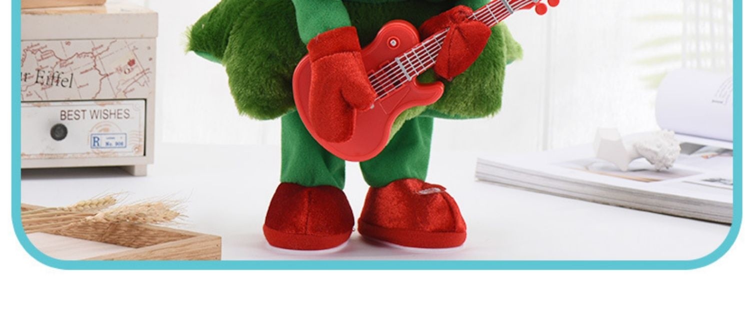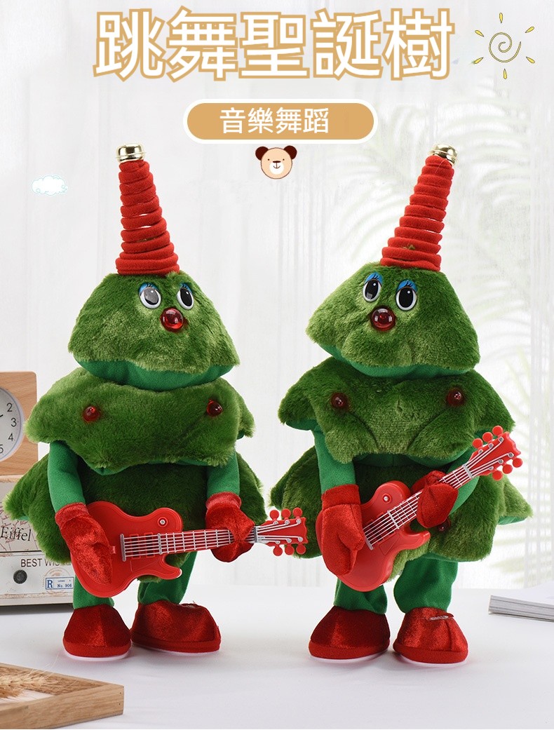 會跳舞的聖誕樹來囉!撚一下開關~彈吉他搖頭擺尾,囡仔笑甲吱吱叫!✅彈吉他跳舞✅ 清脆鈴鐺聲✅柔軟毛絨裝✅一鍵就啟動